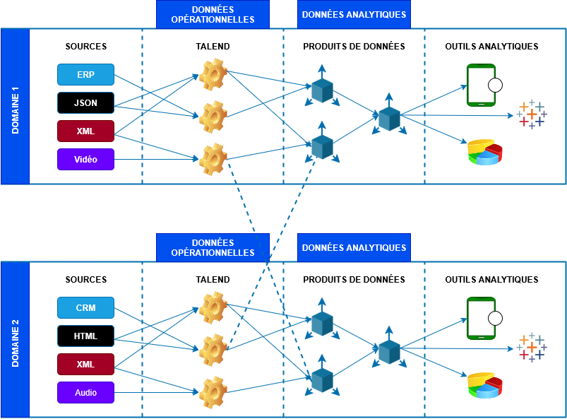 Données analytiques : les produits de données sont utilisés pour générer des analyses plus ou moins avancées à travers divers outils (visualisation, analyse ad-hoc, data science…).