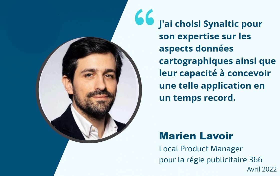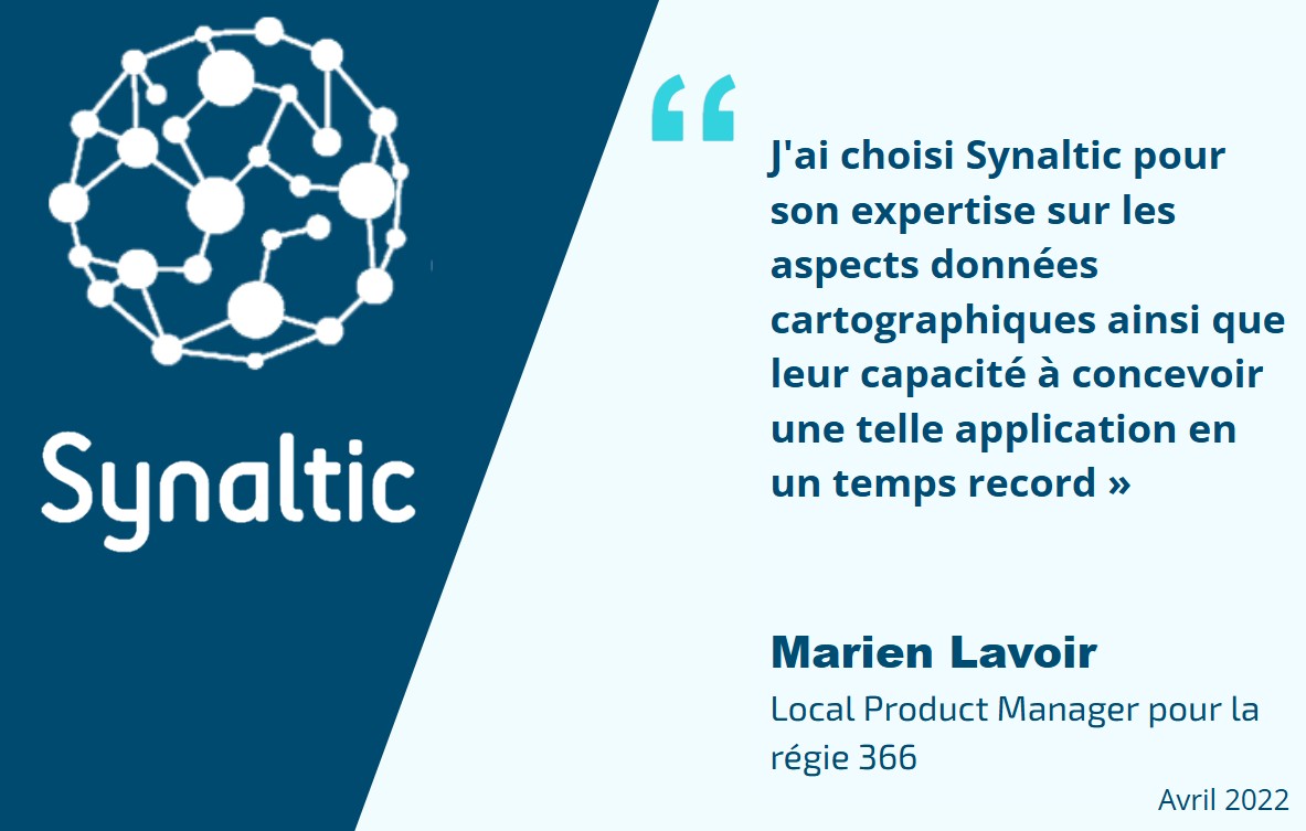 "J'ai choisi Synaltic pour son expertise sur les aspects données cartographiques ainsi que leur capacité à concevoir une telle application en un temps record."