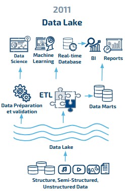 L’accès aux données devient parfois une peine, la vitesse n’est pas au rendez-vous et les évolutions ne sont pas toujours délivrées dans les temps. De plus les projets de data science et de machine learning réclament une connexion à la source des données, ce qu’un entrepôt de donnée n’a pas prévu. Si la technologie est remise en question, la méthodologie du data warehousing reste elle bien confirmée.